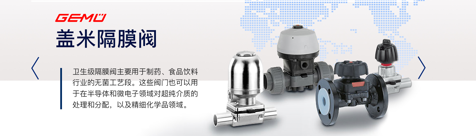 本公司主要代理產品為德國蓋米GEMU閥門、美國濱特爾PENTAIR水泵、德國斯德寶STUBBE泵閥,美國帕斯菲達pulsafeeder計量泵,美國Johsnon轉子泵by SPX產品、萊克勒噴淋球、同時還代理有其他品牌的閥門和儀器儀表等產品。